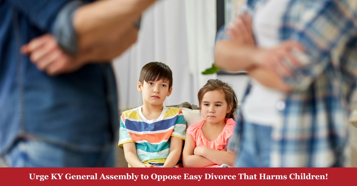 Rep. Stephanie Dietz has introduced HB 109, AN ACT relating to the dissolution of marriage. This bill would eliminate an important 60-day waiting period before a divorce may be finalized when kids are at issue, in certain circumstances. We believe this is the wrong direction for the law to be moving. HB 109 passed the House Families and Children Committee on Thursday, February 5 and could receive a full House vote at any time.Kentucky, with only a 60-day waiting period for divorces with children, already has among the most lenient and shortest in the nation of states with waiting periods. Many states have considerably longer waiting periods, and some research has shown that states with longer waiting periods have lower divorce rates. Waiting periods are beneficial for several reasons - they encourage reconciliations, affirm the importance of the marriage commitment, and can be fairer to the spouse who is being left.Further, the numerous harms of divorce on children are devastating - negative impacts on children’s learning capacity and education, increases in drug and alcohol abuse, violence and physical abuse, increases in behavioral, emotional, and psychiatric risks, including suicide, and even an astounding decrease in life expectancy. Divorce also creates devastating emotional and financial problems for both husband and wife, mother and father.Kentucky and the entire nation’s embrace of unilateral, no-fault divorce has weakened the institution of marriage, with disastrous fiscal, societal, and human consequences. A part of meaningful divorce reform should include looking to increase Kentucky's waiting period for divorce, not eliminating it.Please contact your state representative and House leadership, asking them to protect marriage and oppose HB 109.